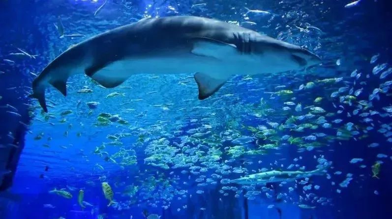 Next up is Shark Town, a place that feels like a thrilling ocean battlefield. As soon as you enter the town, you'll see fierce sand tiger sharks swimming majestically in massive glass tanks. Their sharp teeth and agile forms convey the awe-inspiring presence of these ocean rulers. Also present are the uniquely shaped eagle rays, whose flat bodies glide through the water like kites. Their broad pectoral fins flap rhythmically, as if waving greetings to visitors. When divers enter the water for feeding shows, the spectacle becomes truly breathtaking. Sharks swiftly gather around the divers, vying for food, while children's gasps of awe fill the air—an adventure guaranteed to make their hearts race.
